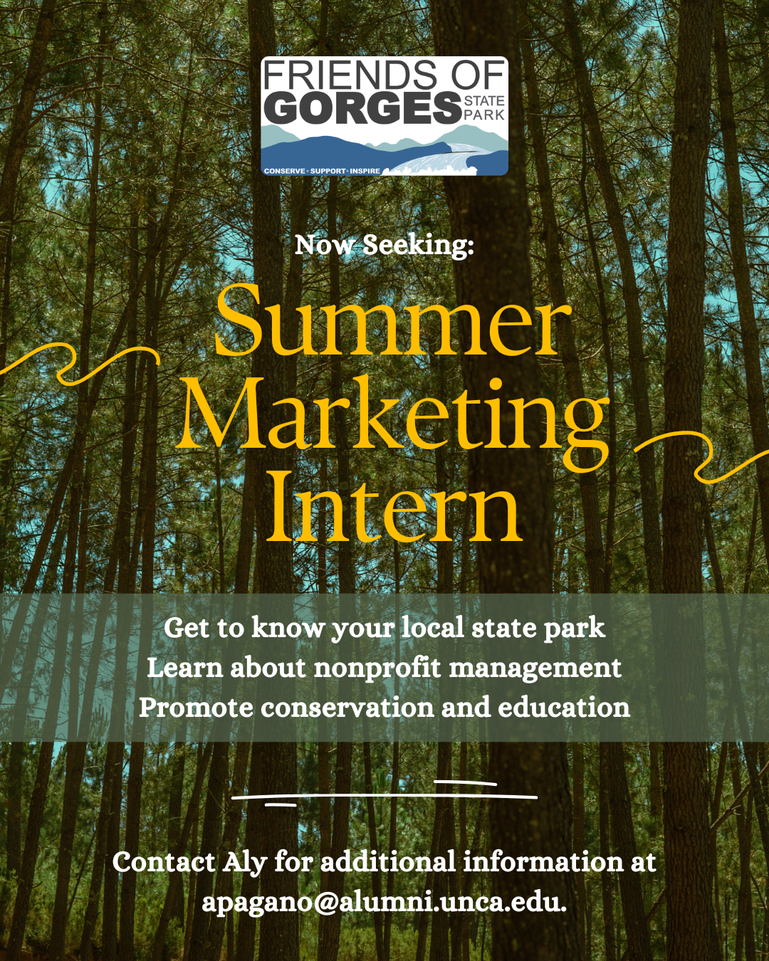 For as little as $15/year, you can be a part of the future of Gorges State Park. By becoming a friend, you'll receive countless benefits but most importantly, you'll be keeping our mission alive.